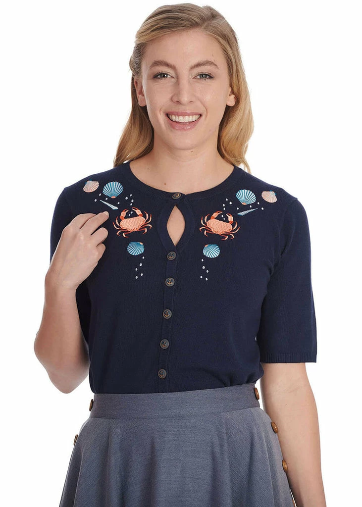For the anchor buttons or the crabby embroidery, you’ll plant your scissors into the Summer Beach cardigan this summer!