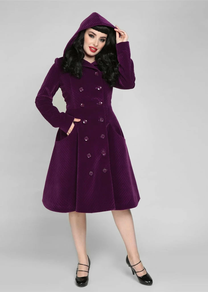 Dramatically beautiful, that’s the Heather Quilted Velvet Hooded Coat!