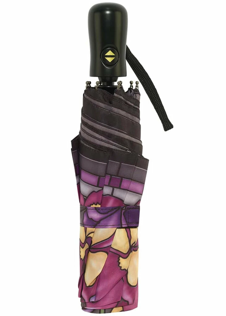 Let this stunning stained-glass-inspired print keep you dry, it’s even printed on the sleeve! The aluminum and glassfibre frame makes it strong, and it only measures 31 cm folded. This convenient model is automatic: It opens and closes with one button.