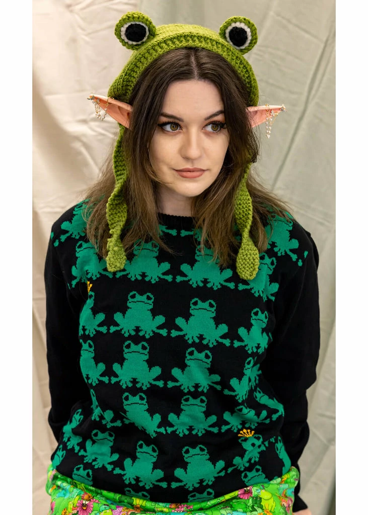 With her longer fit and cozy 100% acrylic, she’s warm and FAB at the same time 😉 The ribbed seams at the bottom, neckline and the ends of the long sleeves keep the warmth inside. She ends around the hips.